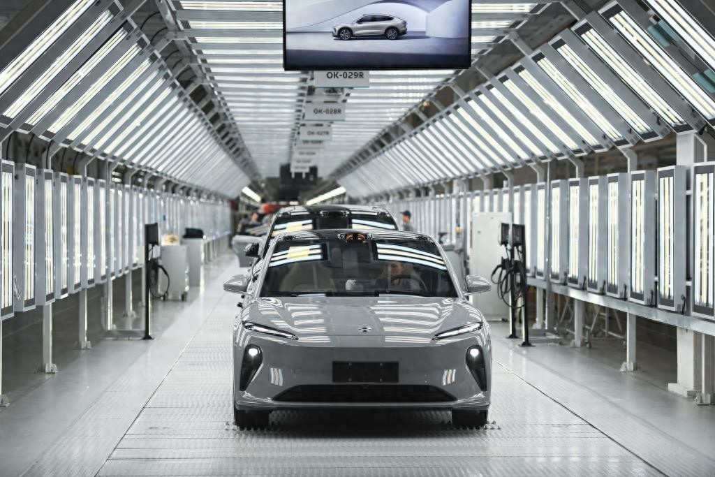 这是安徽省合肥市新桥智能电动汽车产业园蔚来第二工厂内的新能源汽车生产线(2024年5月9日摄)。新华社记者张端摄