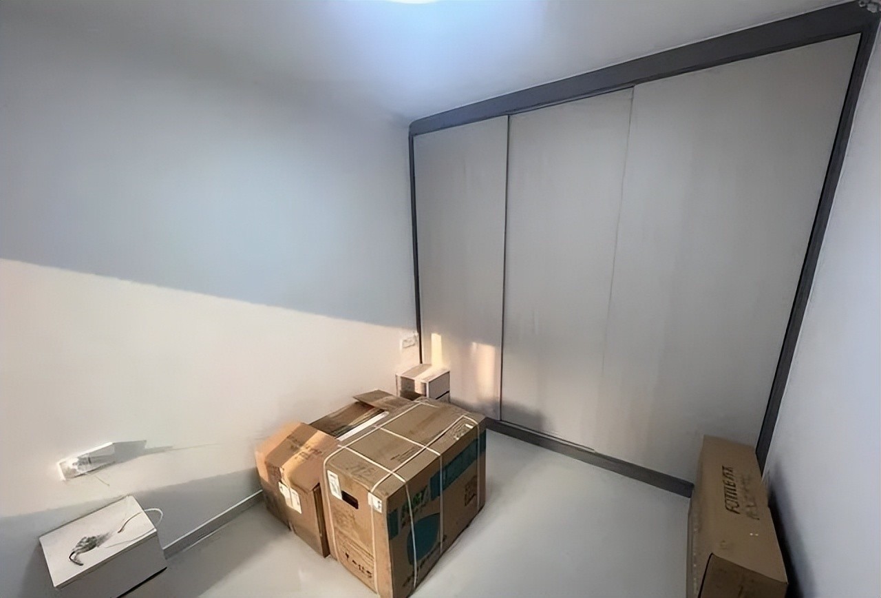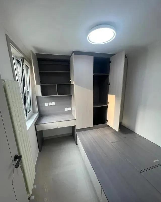 这是主卧,定制的衣柜直接到顶。等到把床布置进来后,基本就没有什么多余的空间了。对于卧室来说,作为休息的主要区域,这样的空间其实也足够了。